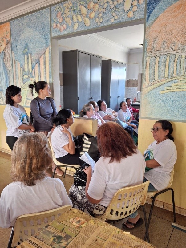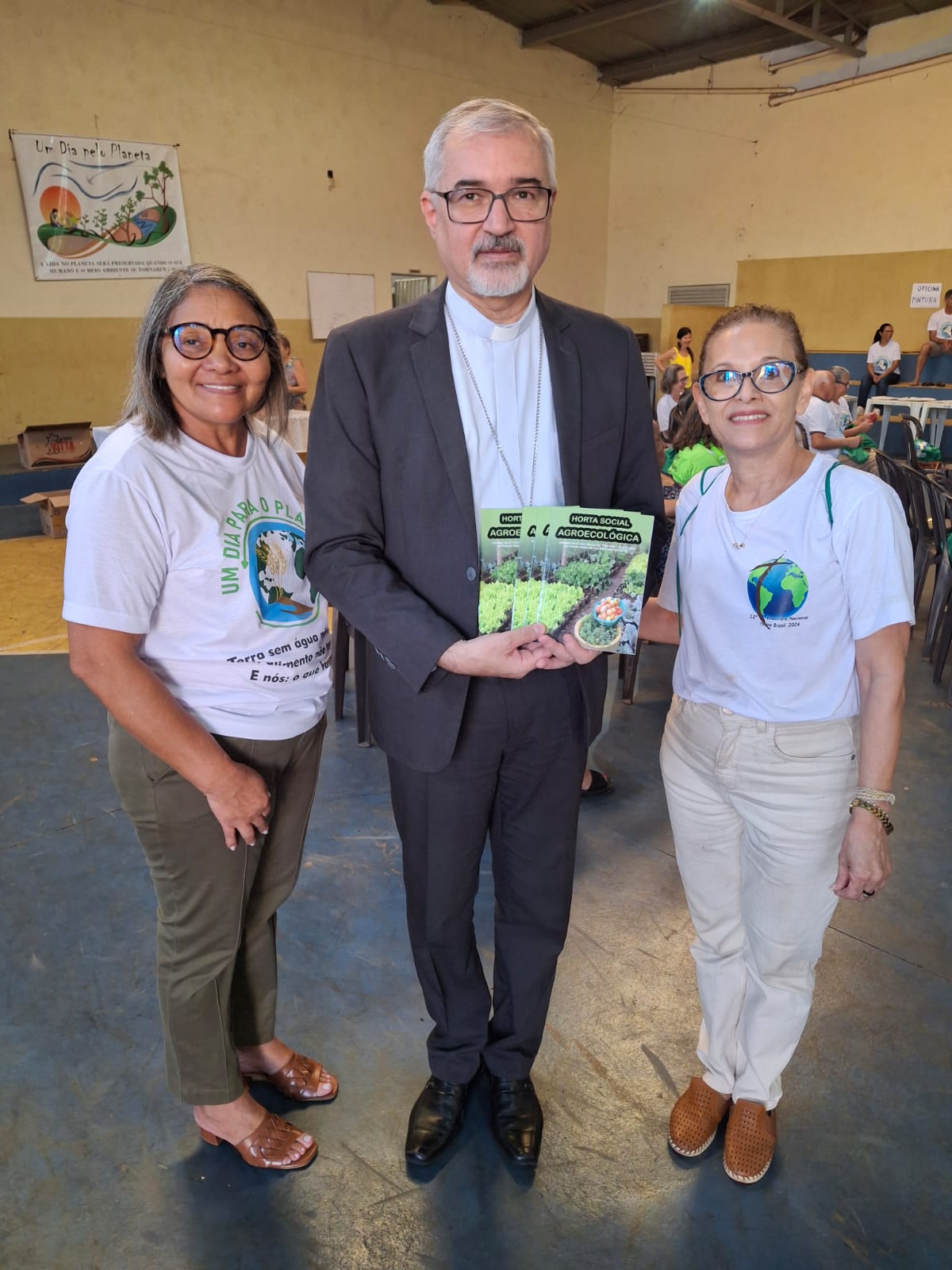 Vera apresenta o livrinho sobre hortas (ADEC) Dom João Justino, arcebispo de Goiânia falando para o grupo